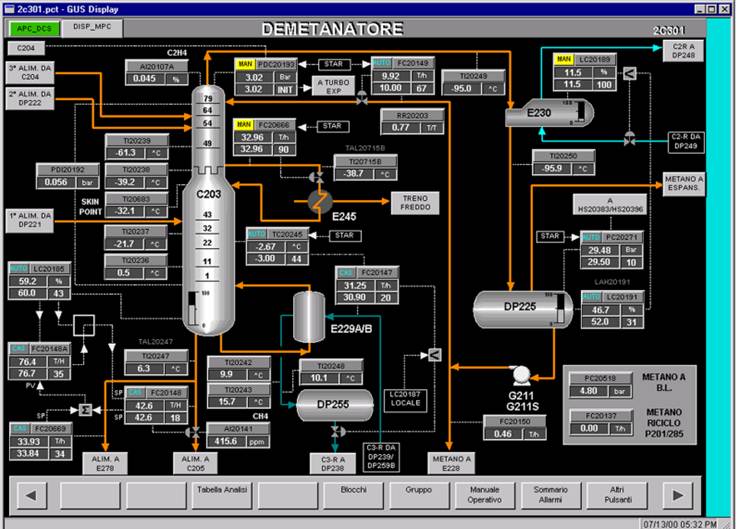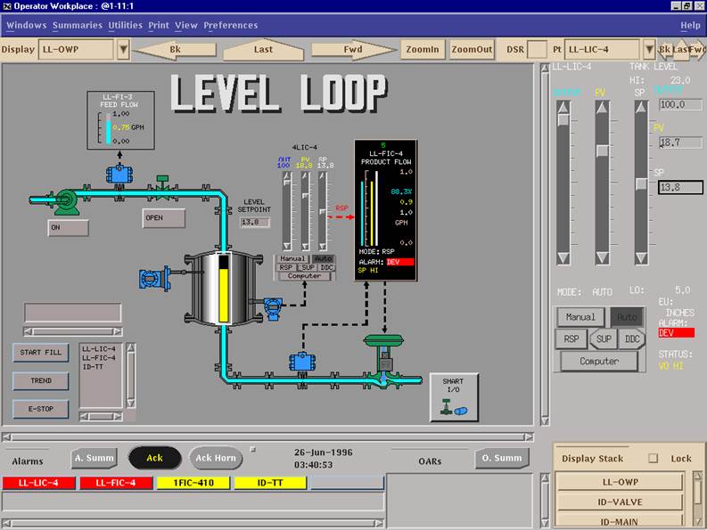 DCS operator graphics workstation. The process values are displayed along with the graphic
