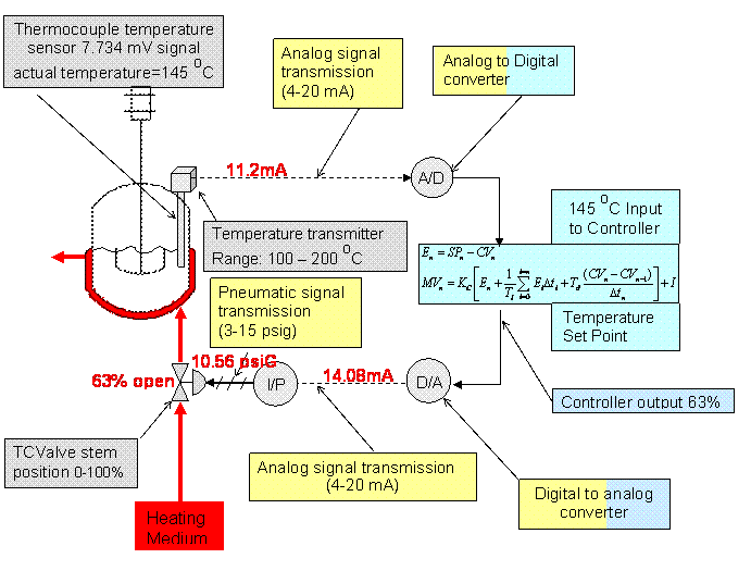 Tank temperature is measured by a thermocouple and transmitted to the controller where it